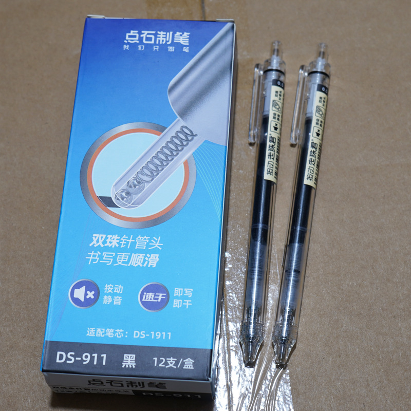 点石押し直液式ボールペン速乾双珠針管頭中性ペン学生黒水筆DS-911