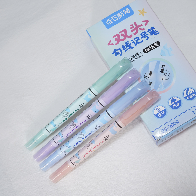 点石双頭線マーカー美術用黒防水色落ちしない子供絵画マーカーDS-2009