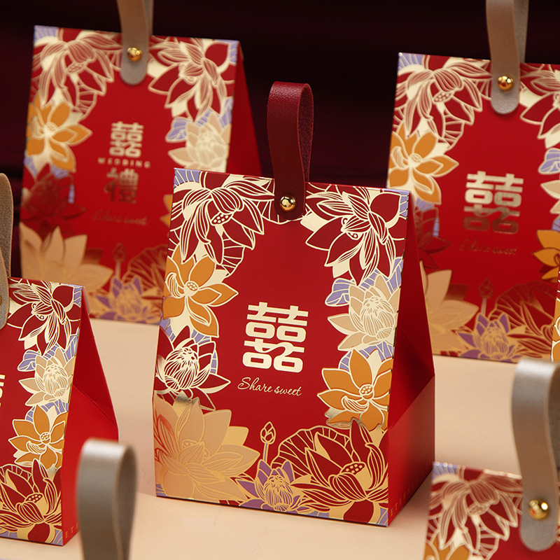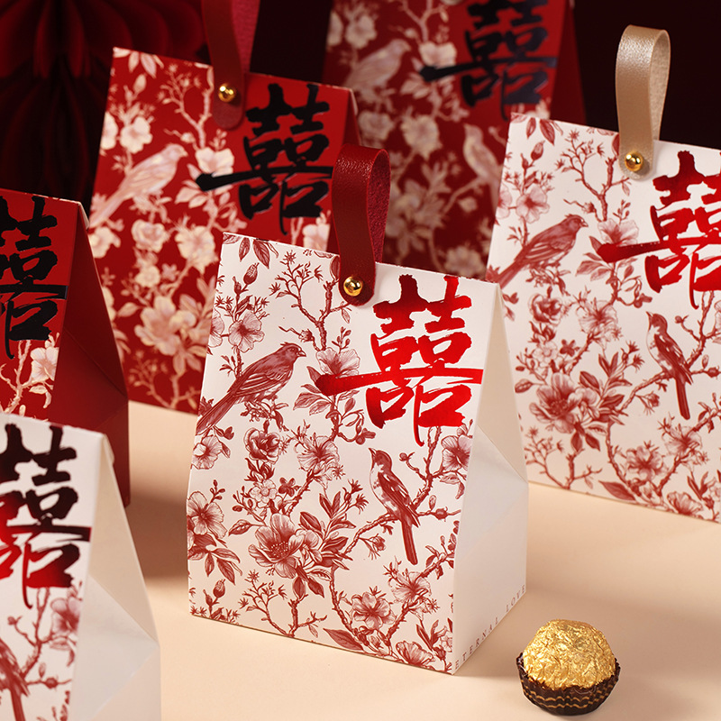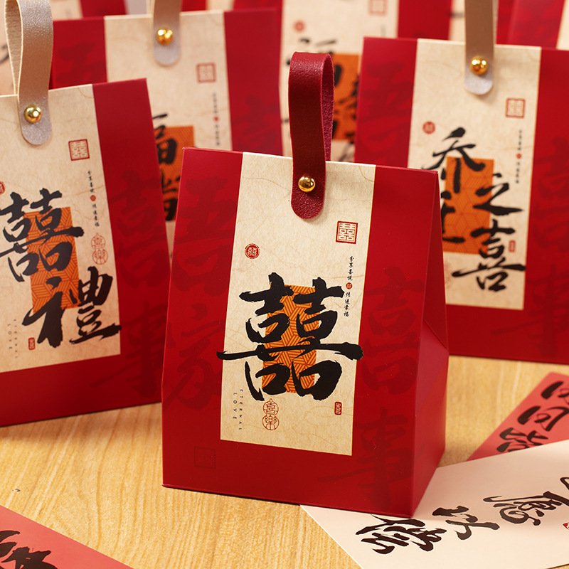 新型結婚手提げ喜糖箱中国式喜糖袋結婚式お土産砂糖箱婚約お返し喜糖包装箱