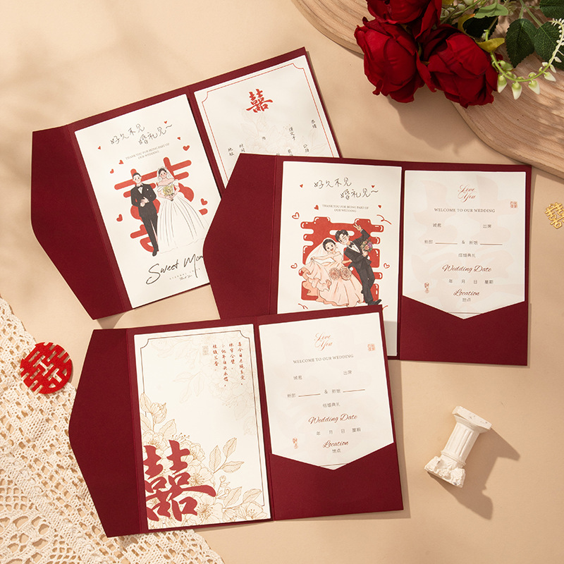 結婚招待状の祝宴の招待状の新型創意的な結婚式の喜びは感謝の宴の招待状の高級感の新しい中国式の祝典に感謝します。