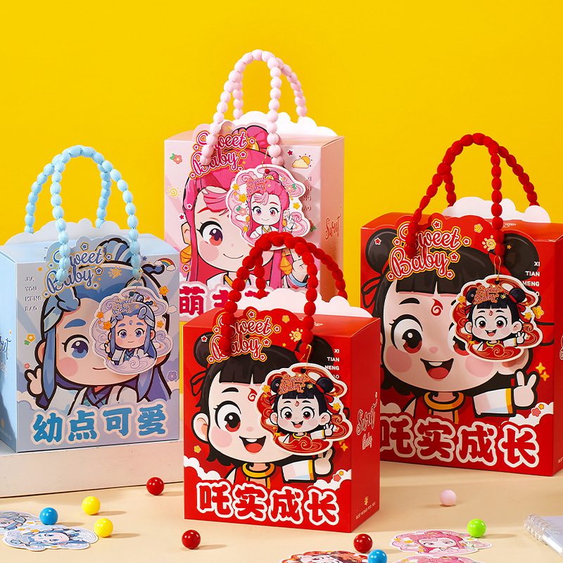 小龍女糖果箱プレゼント袋赤ちゃん満月お返し喜糖箱お土産アニメ六一手提げ袋