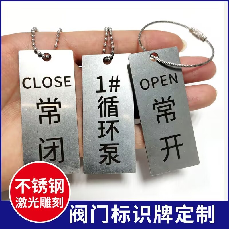 ステンレス吊り札レーザー彫刻金属銘板配管バルブ標識看板看板パレットバーコードナンバープレート