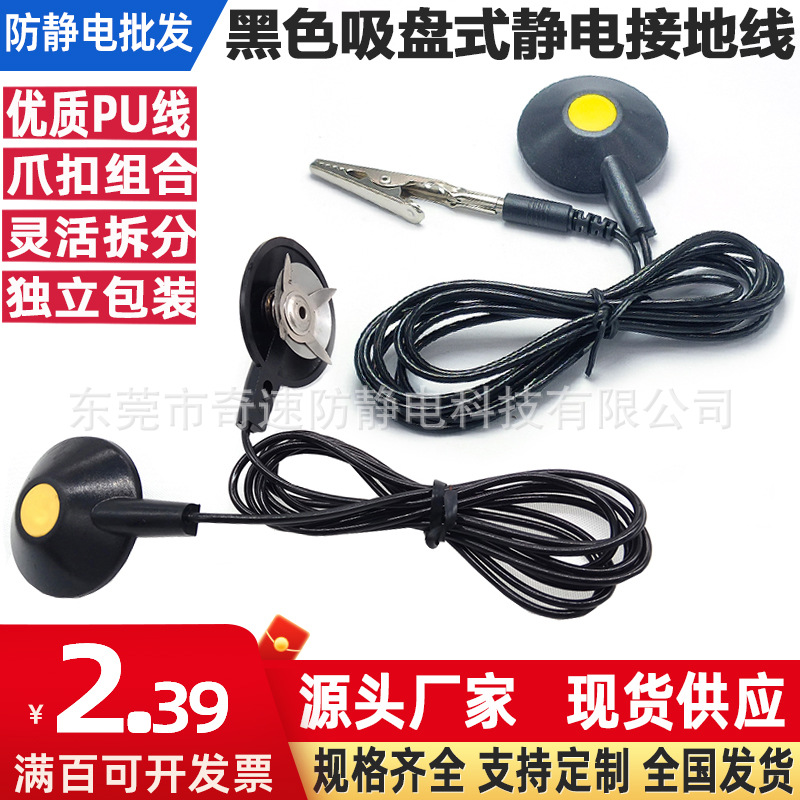 1.8メートルの全黒埋め込み式クリップを供給します。静電気防止ボタン奇速単双星爪吸盤式端子接地線です。