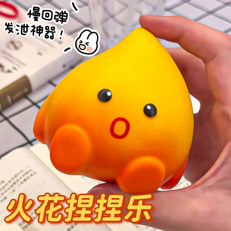震え音の小さい火の人はおもちゃの炎の精霊の子供をつまんでおもちゃを解凍します。