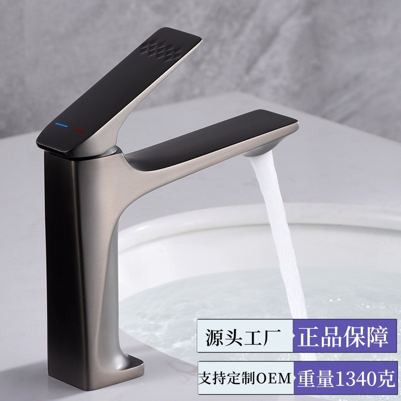 クロスボーダーグレーカラータイプの蛇口、洗面台用、全銅製、高型、ホテルや民宿向け、温冷両用銅製蛇口