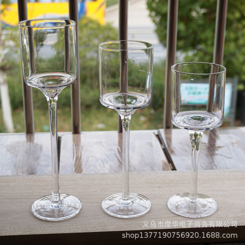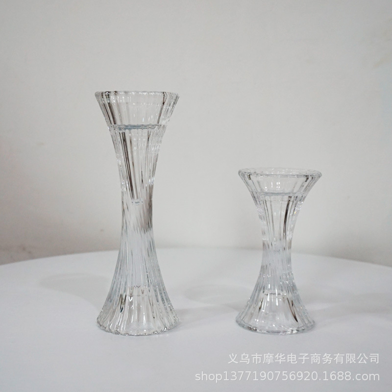 直筒三点セットガラス燭台結婚祝い装飾道具置物レストランろうそく高足カップガラス花瓶