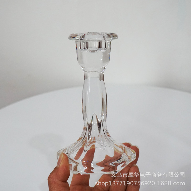 卸売り透明ガラス燭台六角ポールろうそく燭台ウェディングパーティーろうそくろうそく夕食燭台