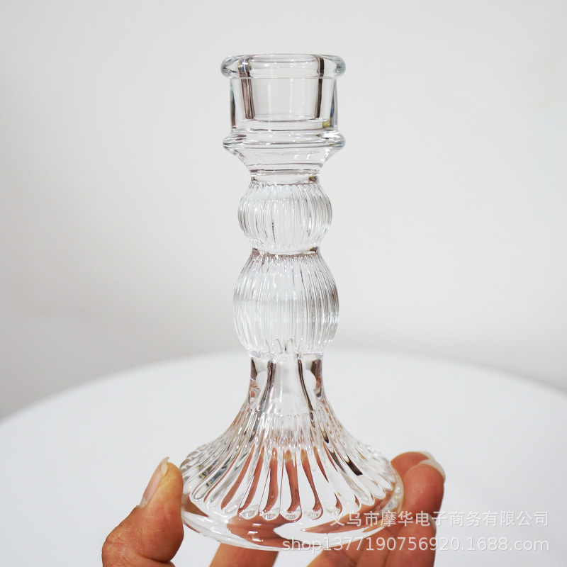 フレンチレトロな縦縞の背の高いクリスタルキャンドルホルダーガラスアロマキャンドルライトディナー結婚式の撮影小道具