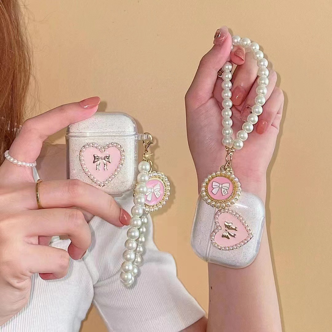 Ins閃粉真珠蝶結びbluetoothイヤホンセットはairipod 1/2pro世代イヤホン保護カバーに適しています。