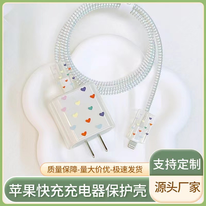 アップル20w充電ヘッド18wアップル充電器保護カバー透明カラー片面データケーブルに適用