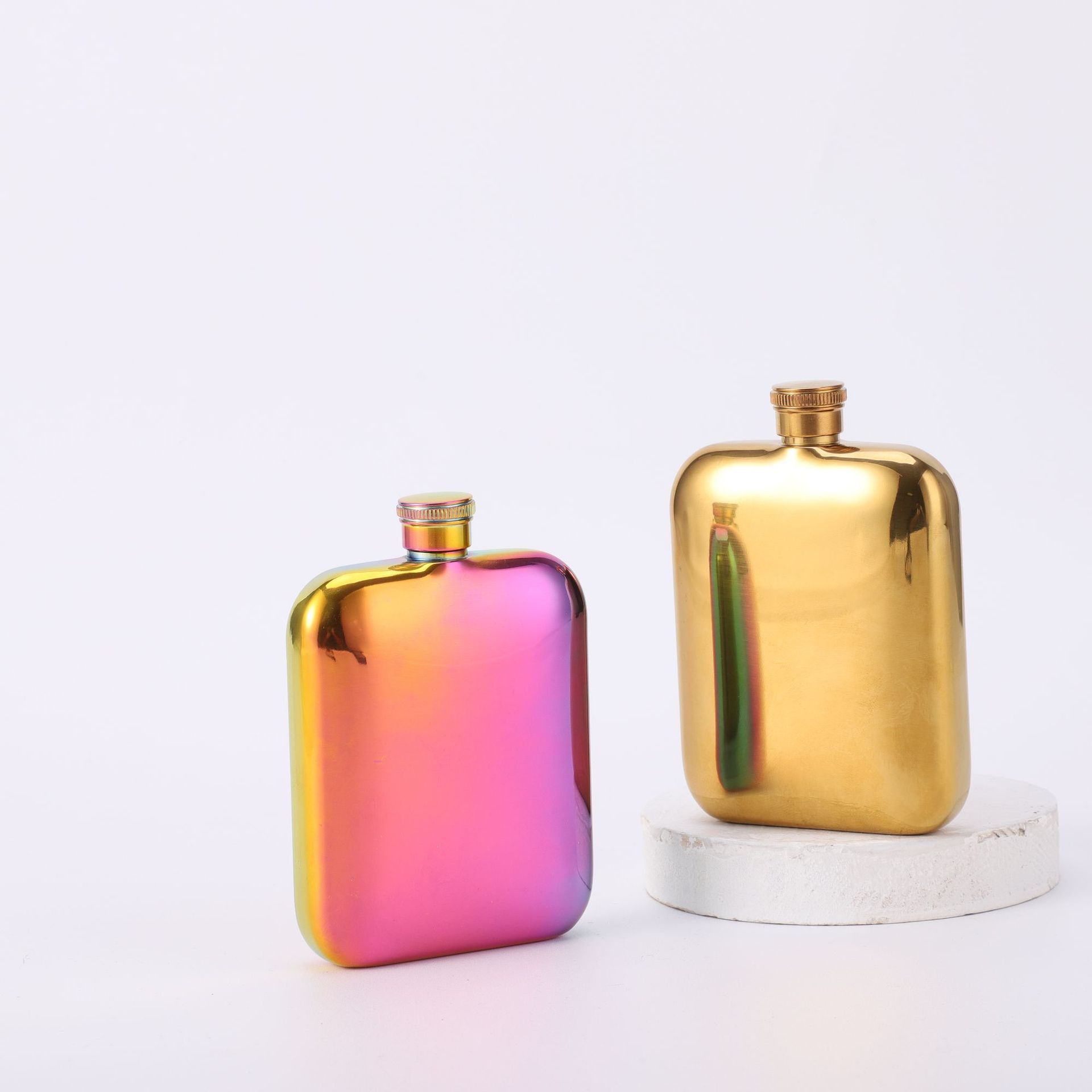 携帯用ステンレス金属の小さい酒の壺を持って、ミニカラーの女性の酒の瓶のメーカーの卸売りを貼ります。