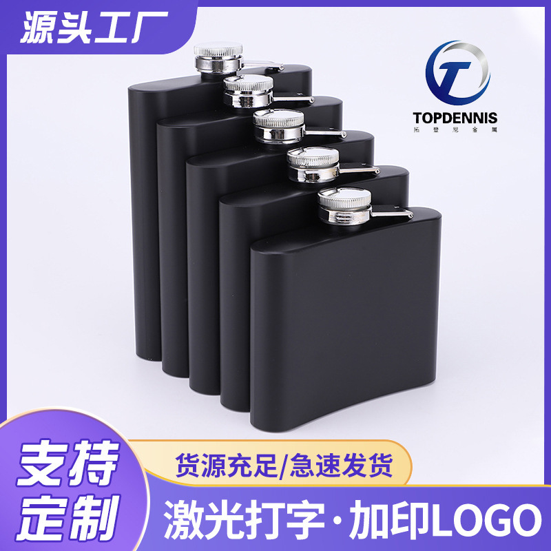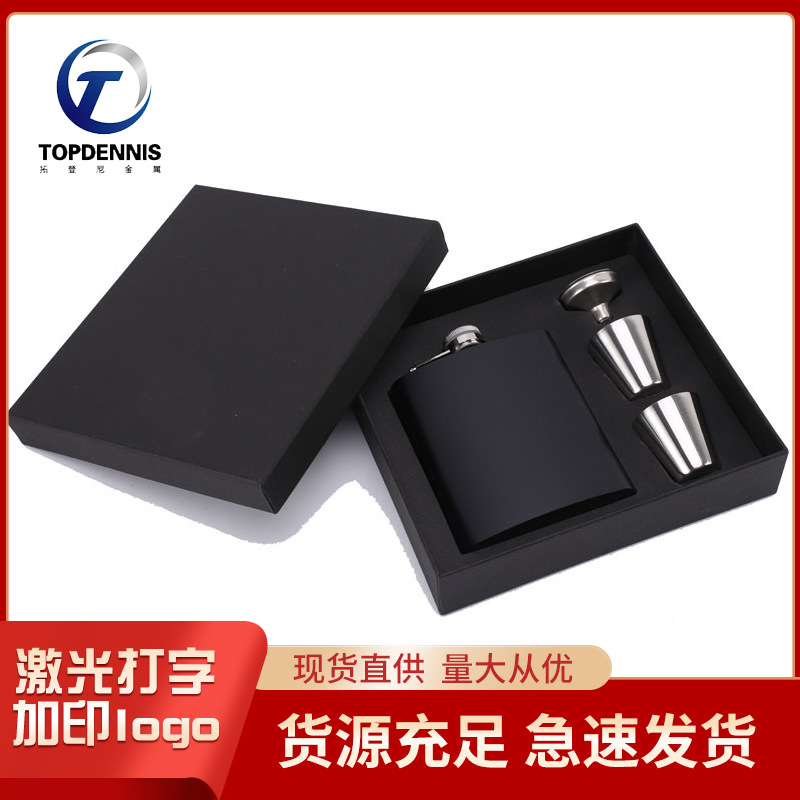 ダントツ黒漆7オンスクロスボーダーアウトドアアウトドアキャンプポータブルステンレスフラットワインポットグラスセット