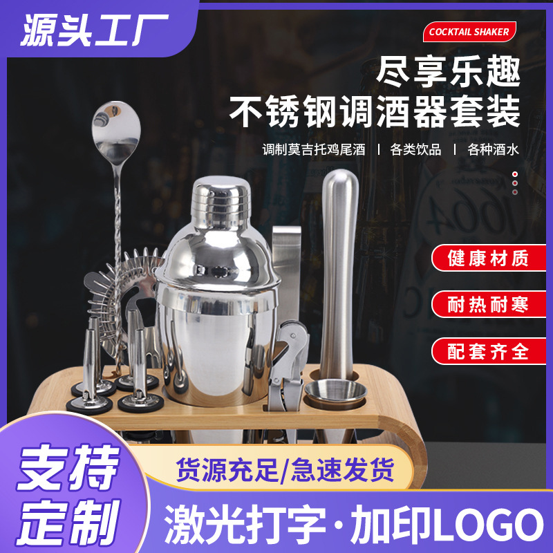 クロスボーダーボストンステンレスバーテンダー目盛付セット10点セットカクテルバー用具木棚付き