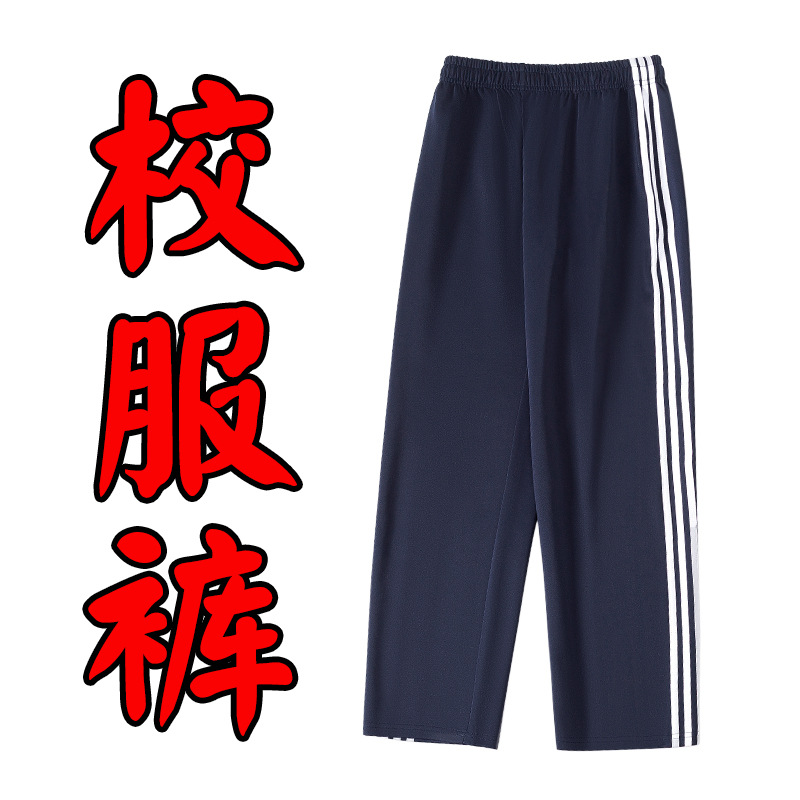 春夏秋ポリエステルネイビーブルーレッドワイドエッジホワイト細ストリップストレートスポーツ学生服パンツゆったり中学生
