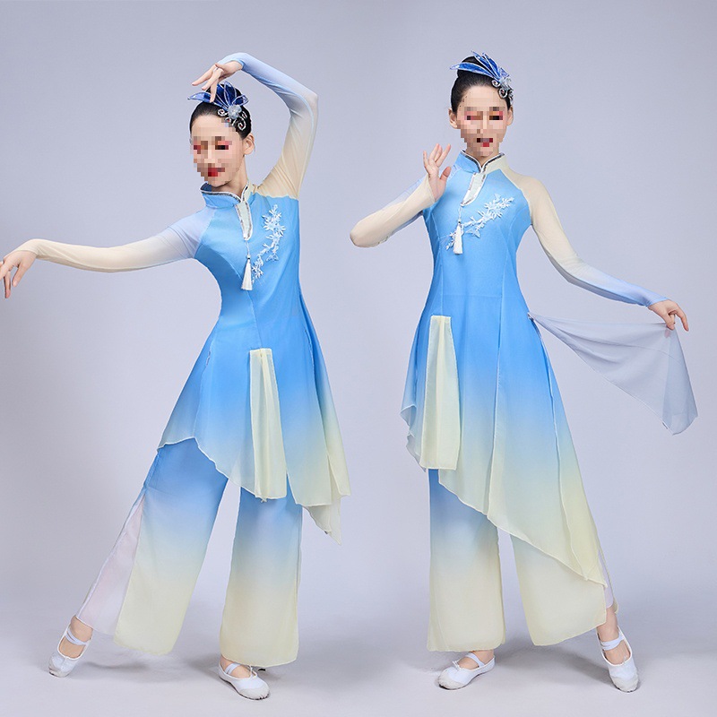 女性用の新しい古典的なダンス衣装、エレガントな中型傘と扇子のダンス衣装、膠州楊子劇ダンスパフォーマンス衣装