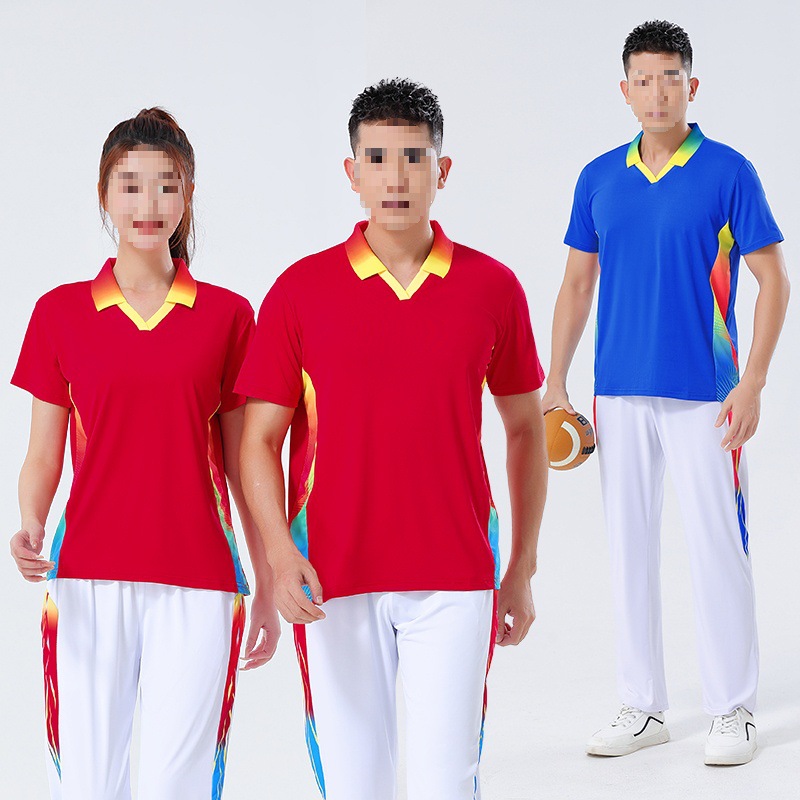 Qingwei 夏新作半袖 Tシャツズボンスポーツスーツ大きいサイズ中高年佳木ス広場ダンスグループ服