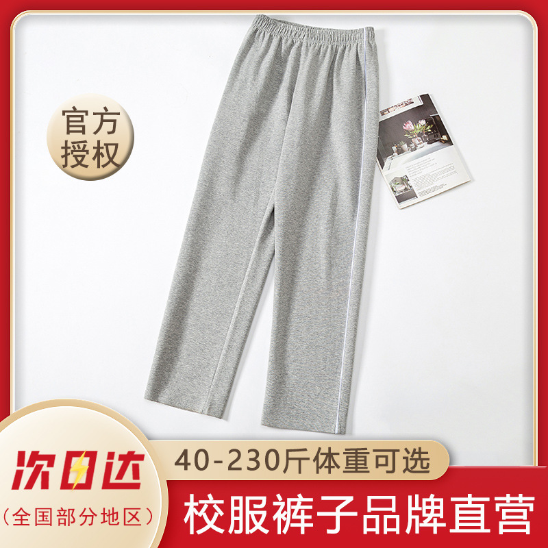 グレーの学生服パンツ、1本のストライプと2本のストライプ、無地のストレートパンツ、中学生、小学生、中学生、夏用の薄いスタイル、男性と女性