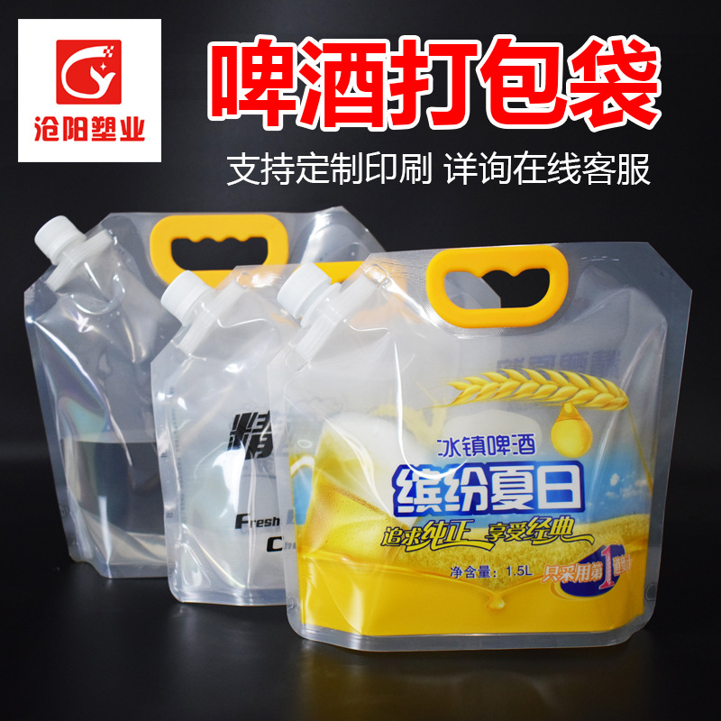 厚みのある使い捨てテイクアウトビール包装袋青島ビール生ビールポータブル包装袋のデザイン