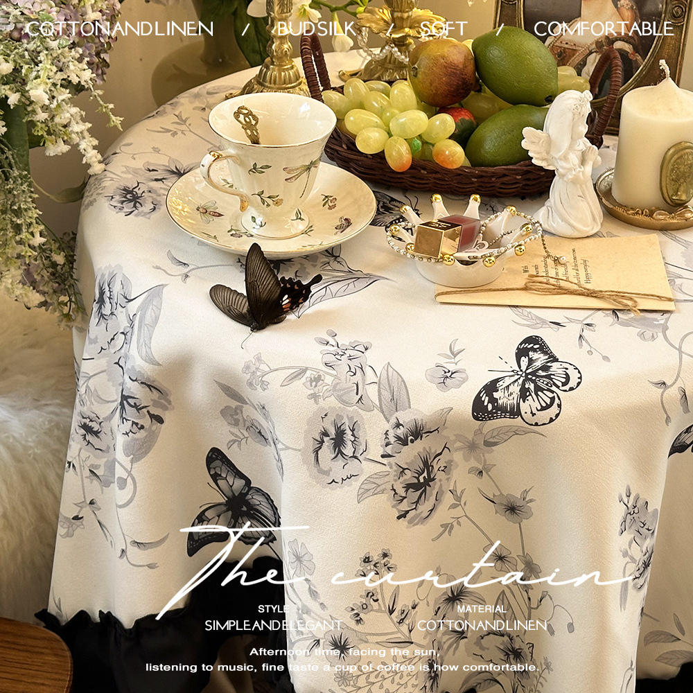 フレンチロマンチックなレトロな蝶のフリル長方形テーブルクロスコーヒーテーブルテーブルクロスデザートテーブルクロス防塵カバー布