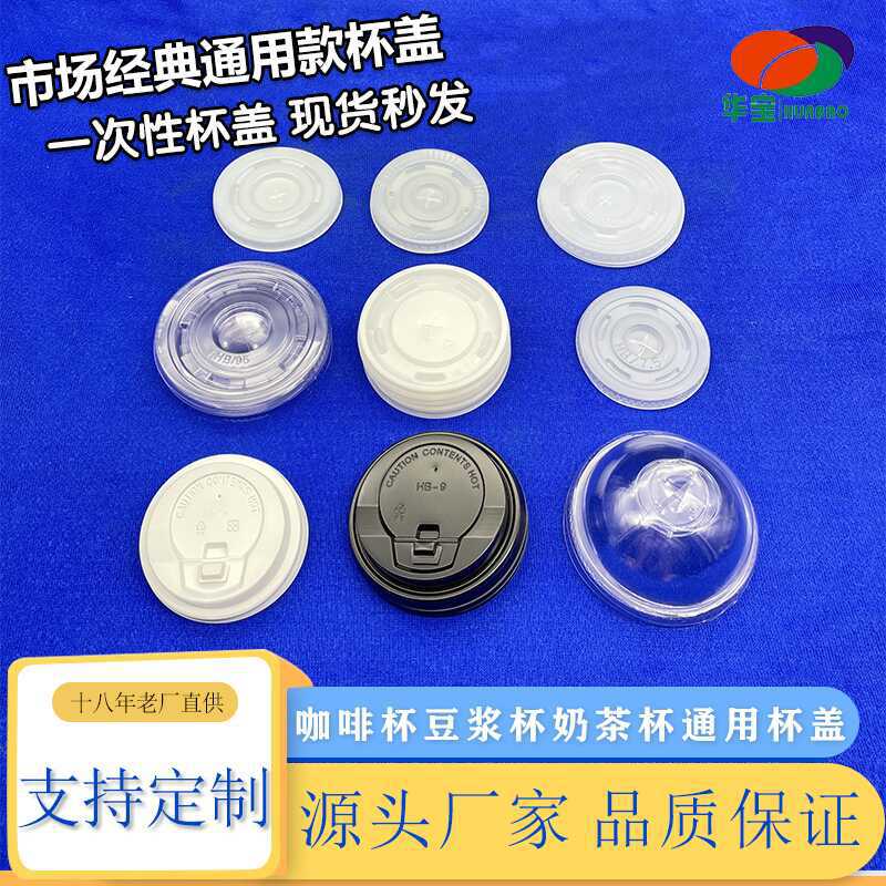 75-95口径奶茶杯盖防漏一次性透明平盖半圆盖塑料豆浆咖啡杯盖子
