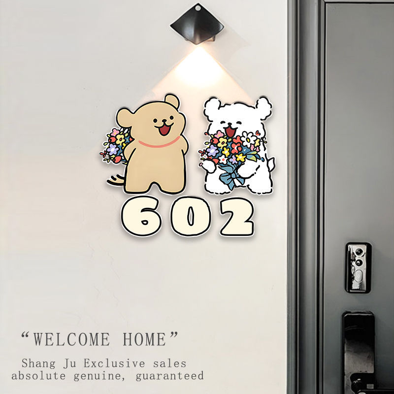 ラインの子犬の表札の番号札の家庭用の入戸の標識のアクリルの立体の暖かい提示札の表札