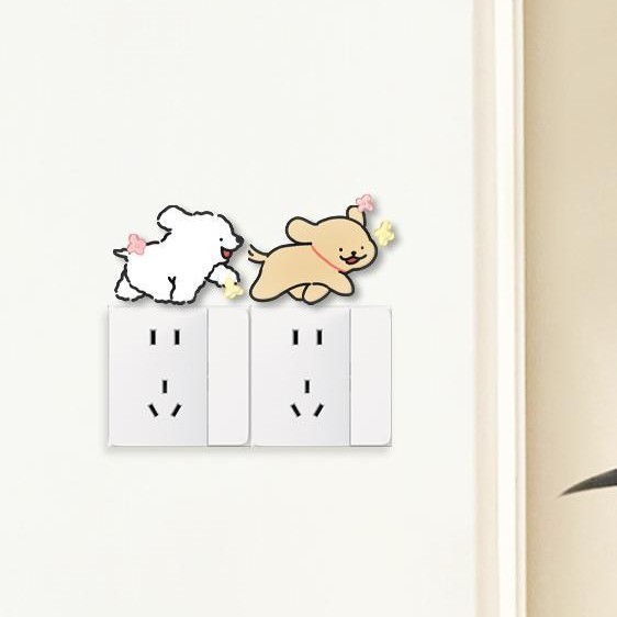 ライン子犬スイッチ装飾壁貼り家庭用かわいいスイッチ枠カバー装飾スイッチ貼りアクリル装飾枠