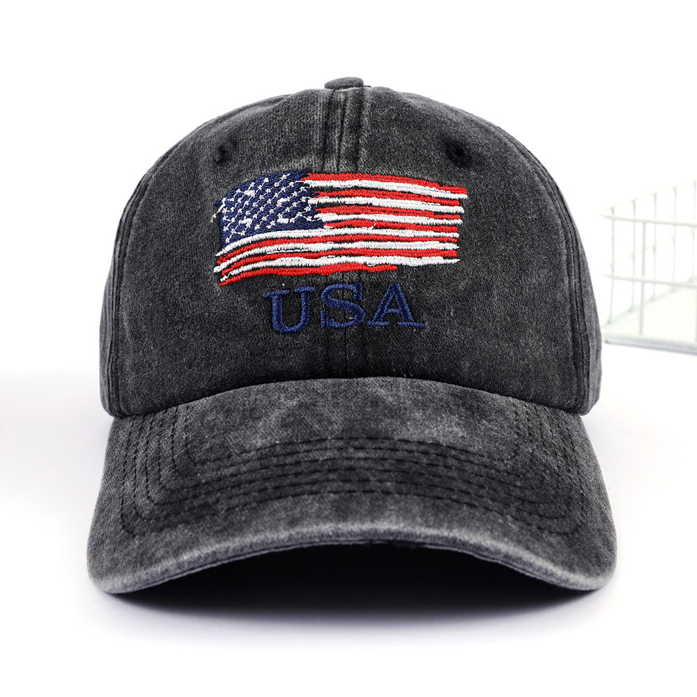 秋冬の新型韓国のファッションの新型のアメリカの国旗はドリルのカウボーイの野球を入れて夏の屋外の太陽の帽子のアヒルの舌の帽子を水洗いします。