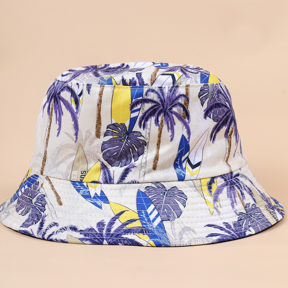 新しい春の夏のココナッツの木の図案の漁師の帽子のプリントの両面の女性の韓国版の潮の日よけの帽子の旅行の日よけの帽子