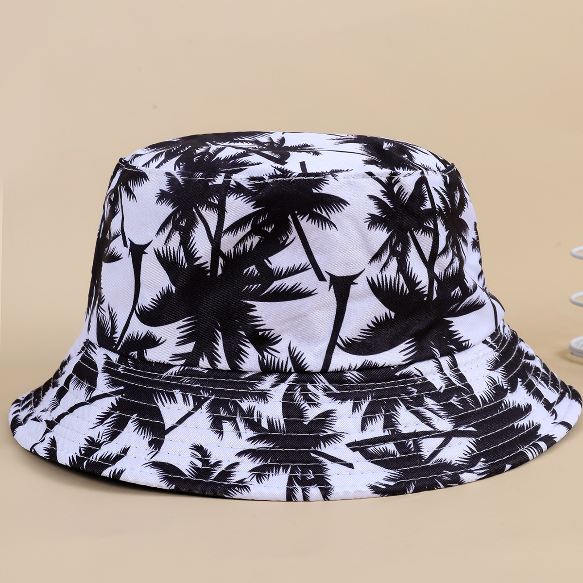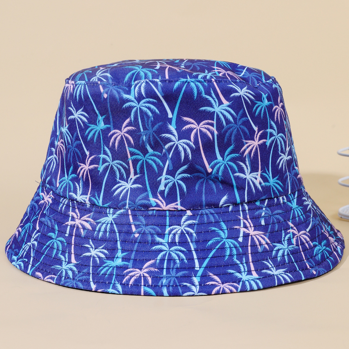 爆型帆布漁師帽男女潮プリントココナツの木の両面に盆帽をかぶった屋外旅行日よけ帽