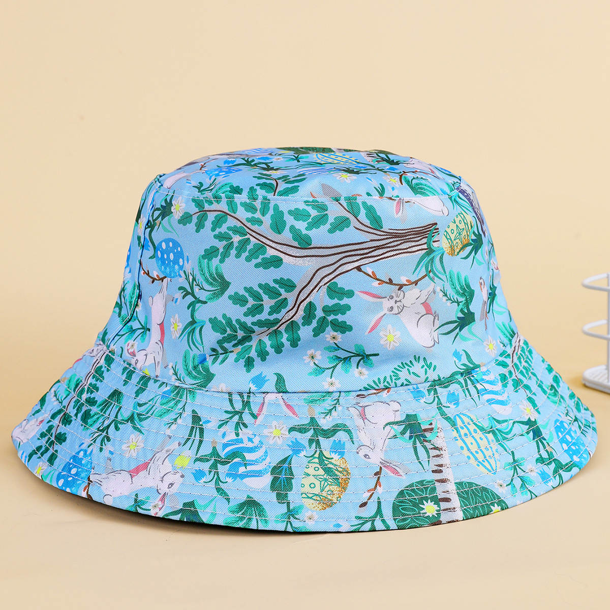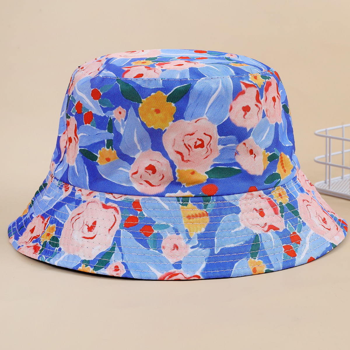 花柄プリント漁師帽漫画レジャー帽屋外旅行日よけ帽清新な日焼け止め帽