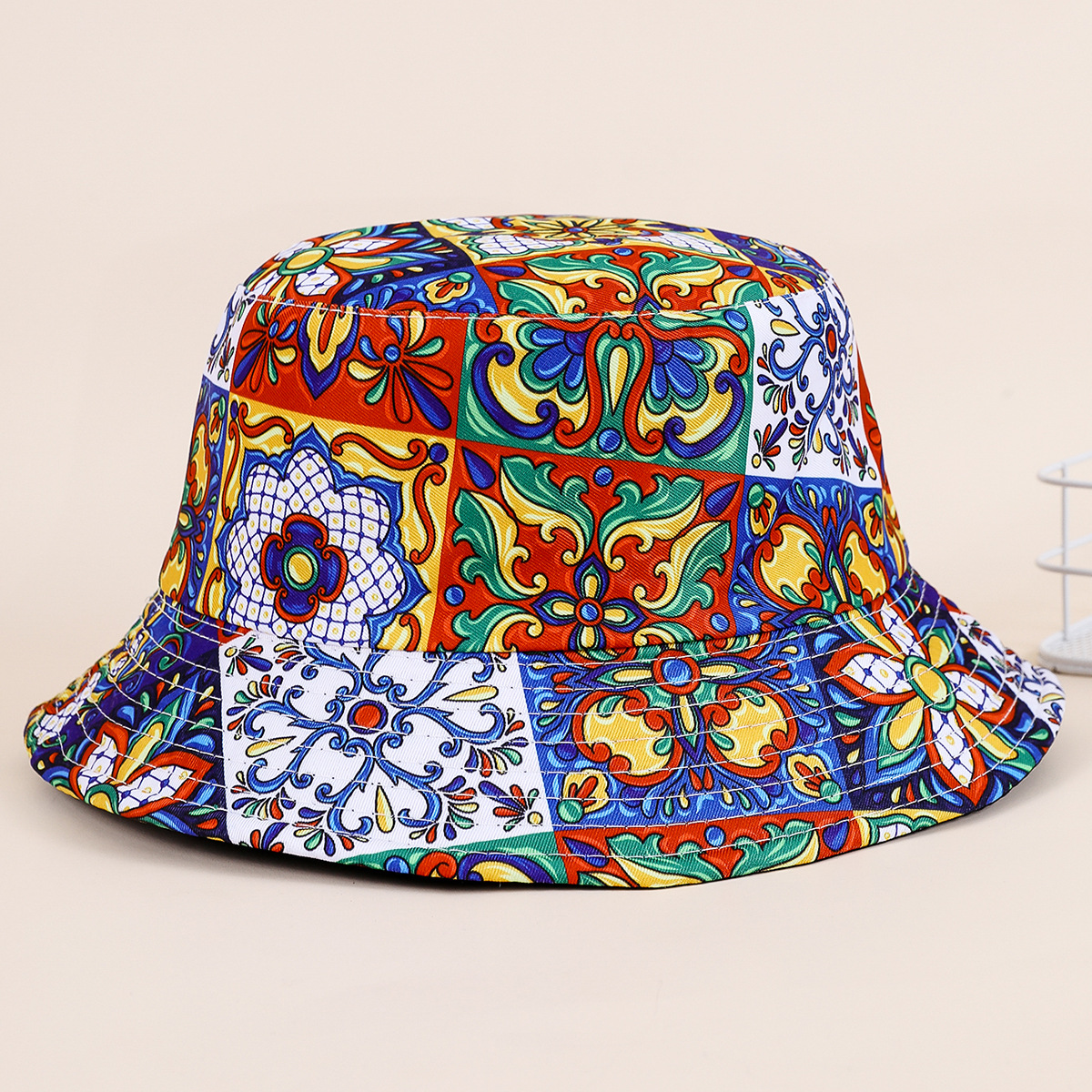 欧米の新型漁師帽のプリント模様の日焼け止め帽子が国境を越えた個性的な屋外旅行の日除け帽子