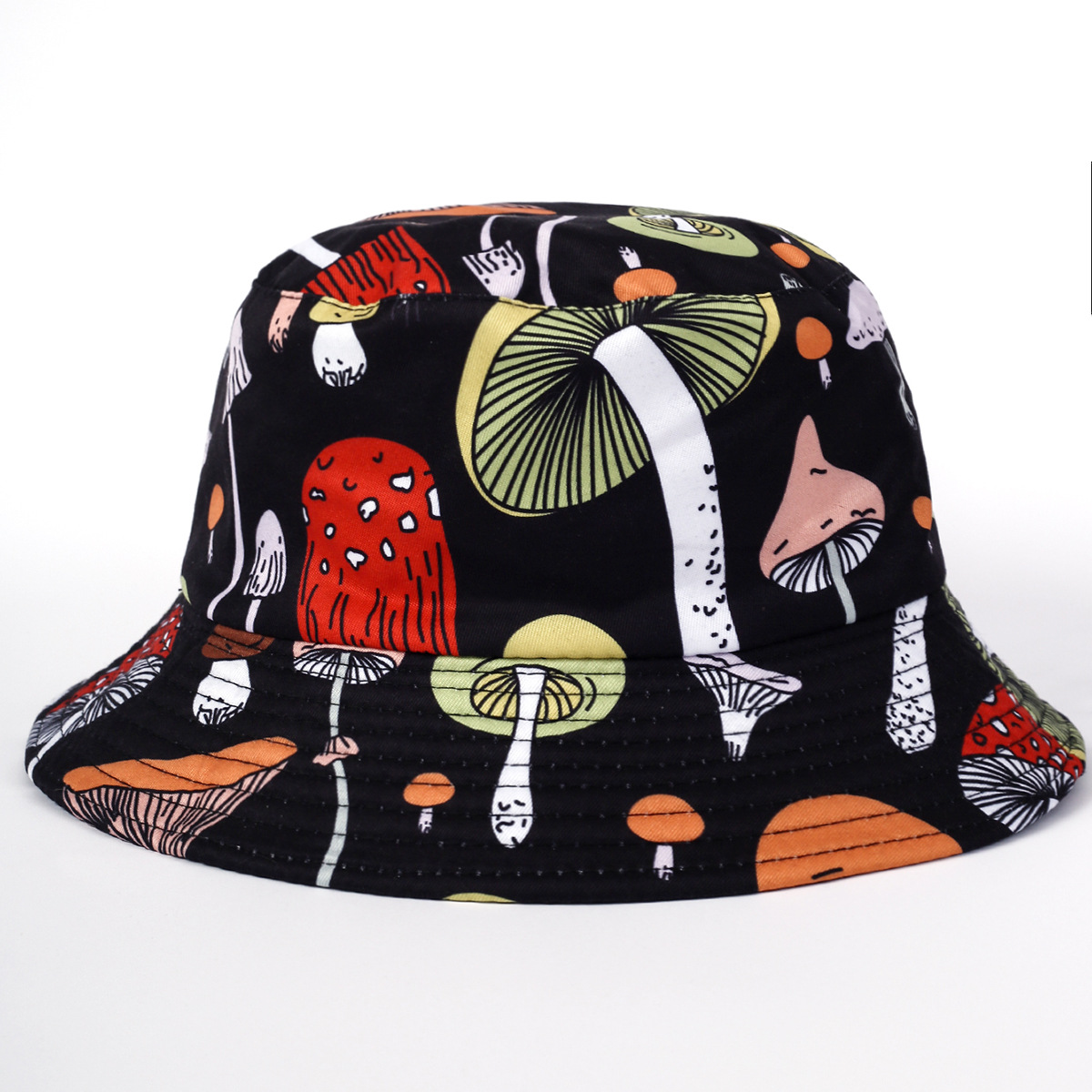 2023新型キノコプリント漁師帽女性欧米男性屋外両面日焼け止めフード盆帽