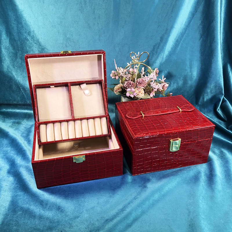 大きなワニ革便利なジュエリーボックスファッション二重三金五金ボックスジュエリー収納ボックス化粧箱