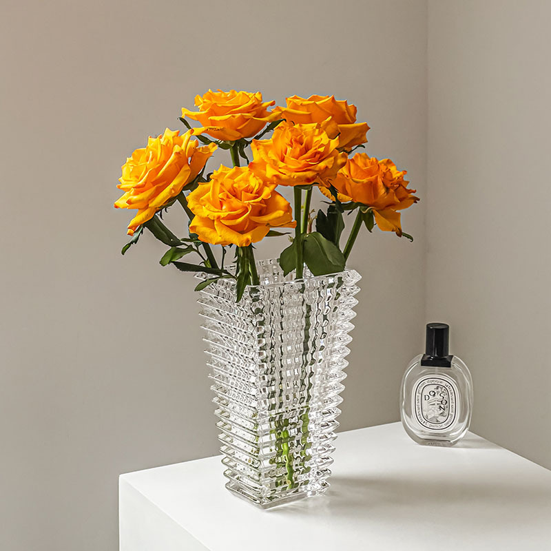 高級感生け花花瓶水晶薔薇ネット赤食卓ガラス客間軽贅沢小フランス透明飾り花