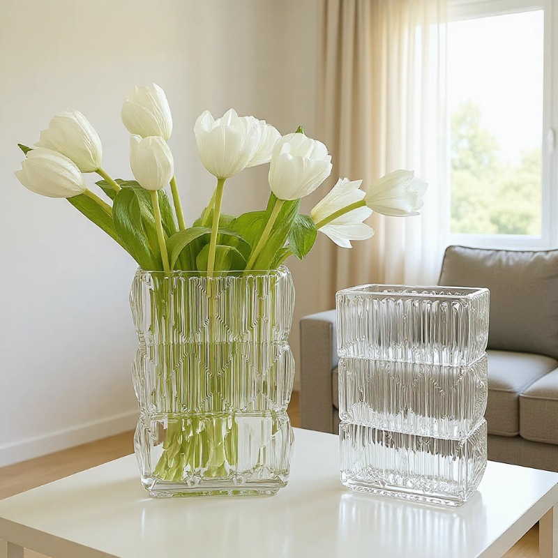 花瓶置物リビング生け花ガラス透明水養薔薇百合高級感生花軽豪華小衆水晶大