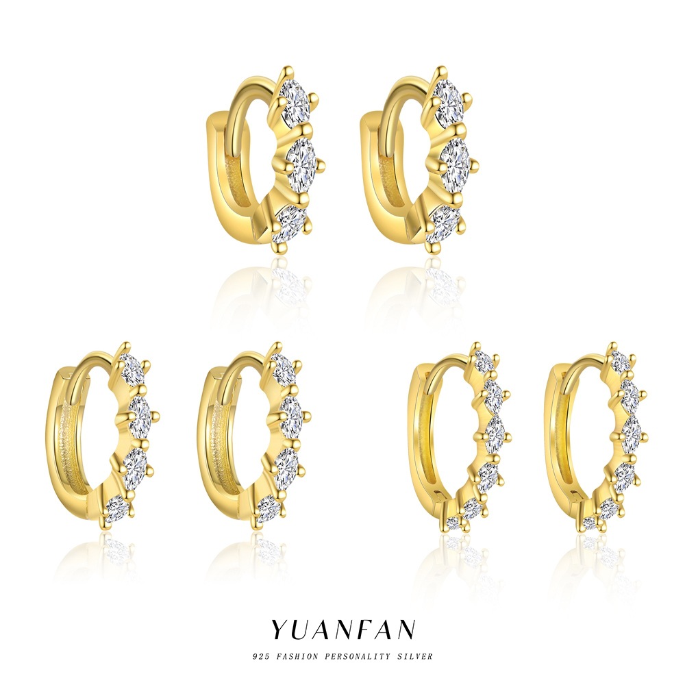 遠梵s925純銀欧米ファッションシンプルジルコン幾何学ピアス女性クロスボーダー個性金属円形耳骨釘
