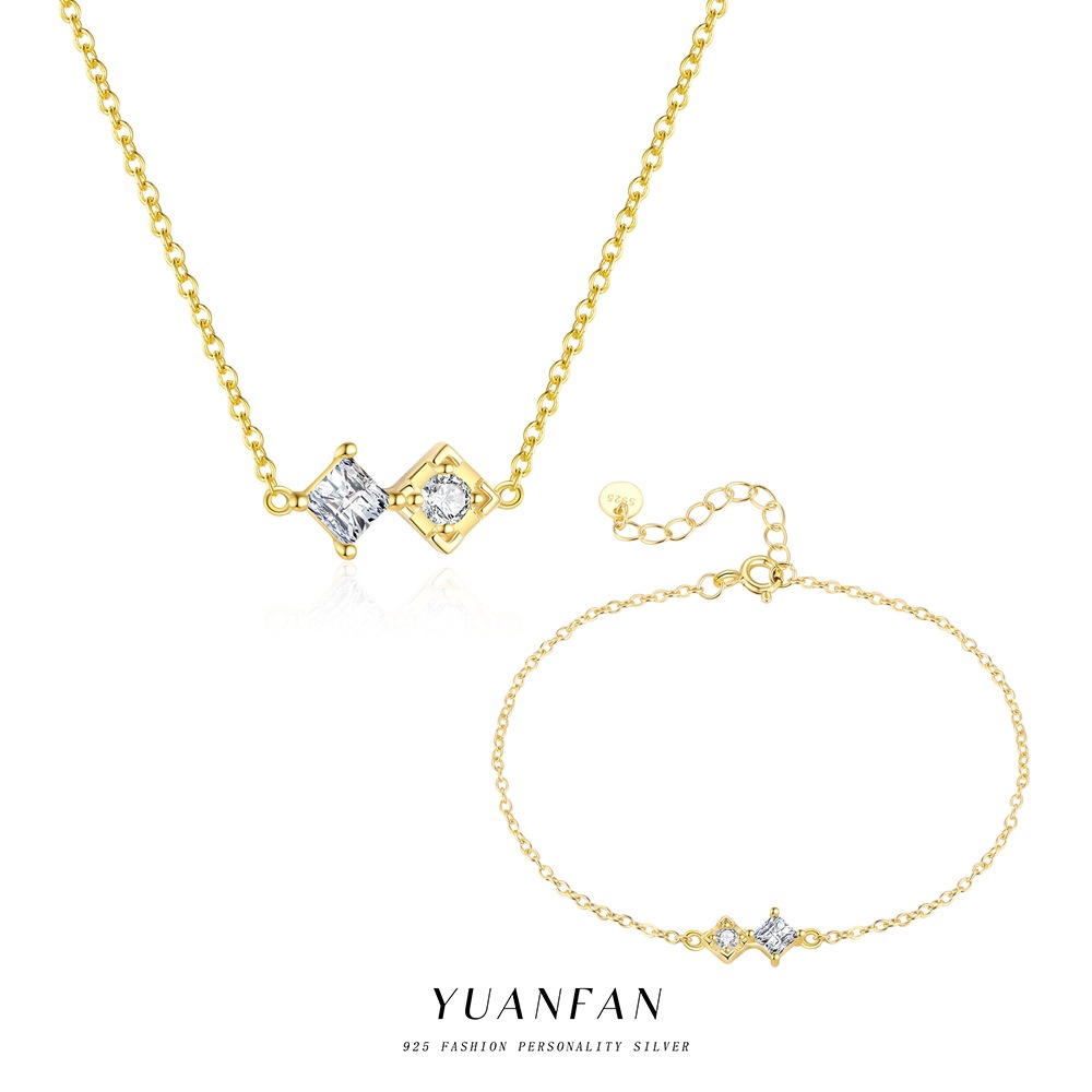 欧米のs925純銀の幾何学はダイヤモンドの四角形のネックレスの女性のファッションの百合の小さい大衆の設計の軽豪華な越境の鎖を入れます。