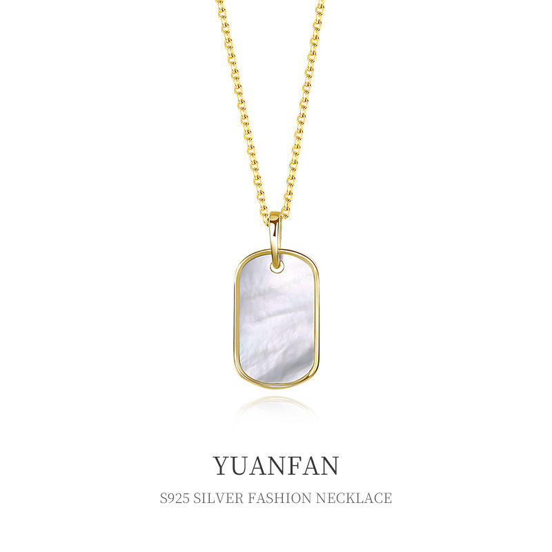 遠梵s925純銀の方牌の白い貝の母のネックレスの女性の軽い豪華な気質のins風のファッションの越境は鎖の鎖を飾ります。