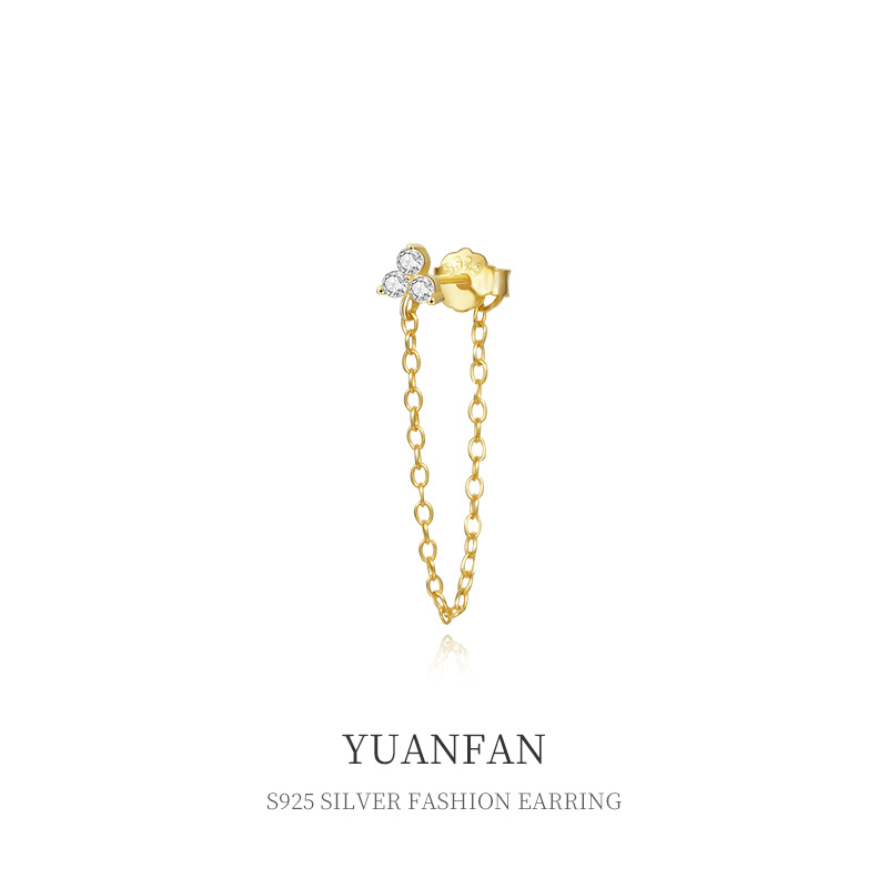 遠梵香925純銀チェーン流蘇花卉ジルコンピアス女性欧米ins気質耳掛け耳飾りスポット卸売り