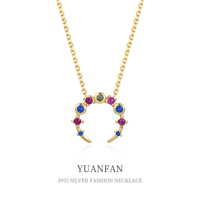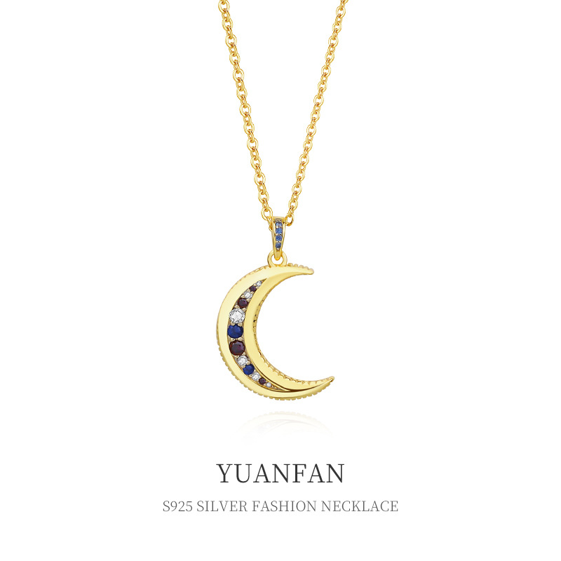 Yuanfan 925 スターリングシルバージルコンムーンネックレス女性のヨーロッパとアメリカのクロスボーダーライト高級ハイエンドニッチ鎖骨チェーン卸売