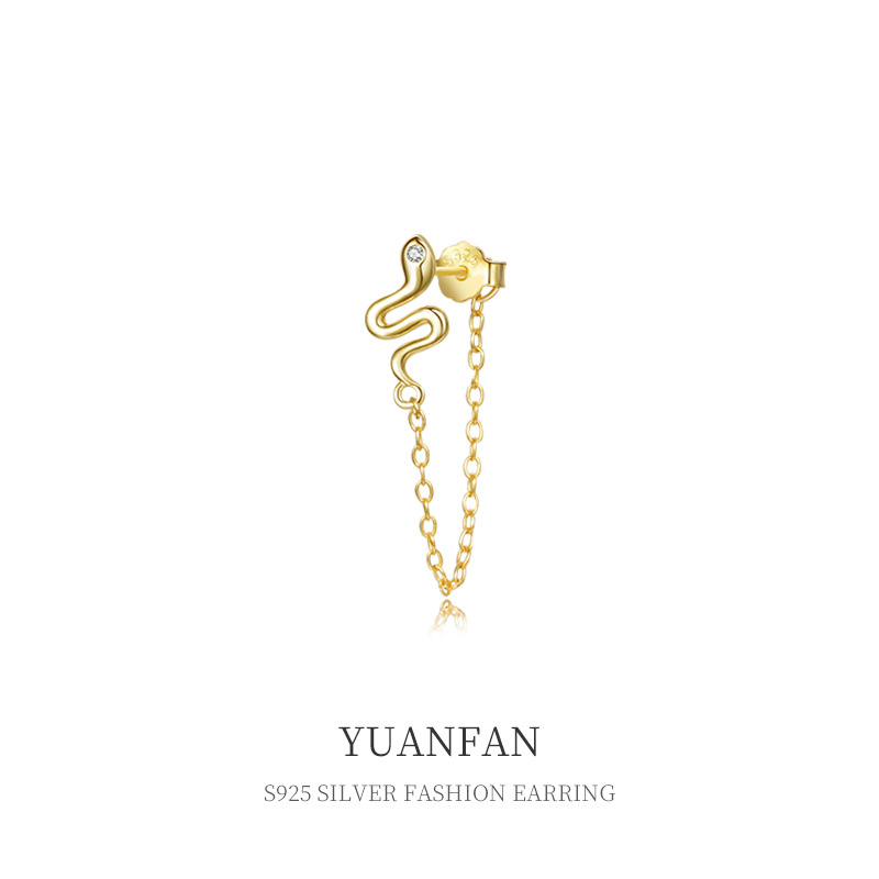 遠梵香925純銀流蘇チェーン蛇耳釘女性欧米国境を越えたレトロなジルコン耳掛けスポット卸売り