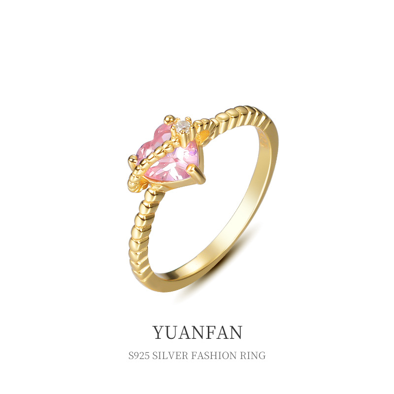 遠梵香925純銀ピンク愛指輪女性レトロins欧米の小衆軽豪華ジルコン指輪クロスボーダー
