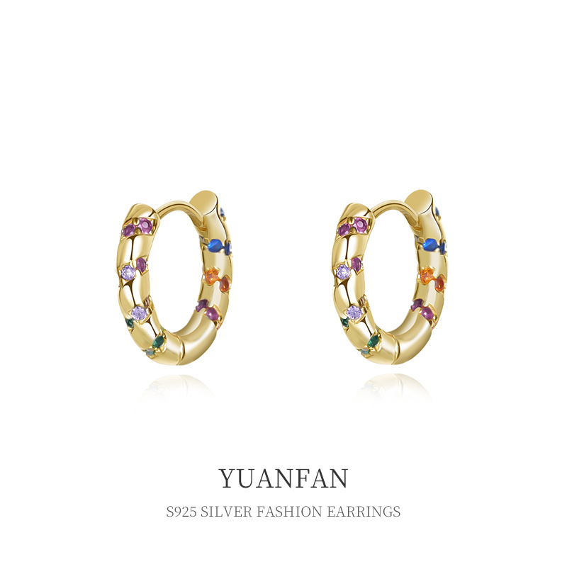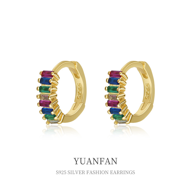 遠梵香925純銀レトロ虹ジルコン耳ボタン女性欧米ins小衆軽贅沢リングイヤリングクロスボーダースポット