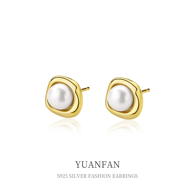 遠梵香925純銀真珠ピアス女ins冷淡風百角気質イヤリングスポット卸売り