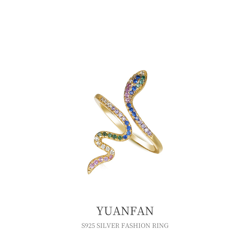 遠梵平925純銀のミニチュアカラードリルの蛇の形の指輪の女性の大衆の設計感の欧米のクロスボーダーのジルコンの口の指輪