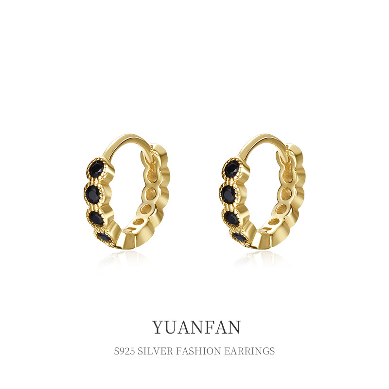 遠梵香925純銀レトロカラージルコンイヤリング女性欧米国境を越えた冷たい風の輪耳ボタンスポット卸売り