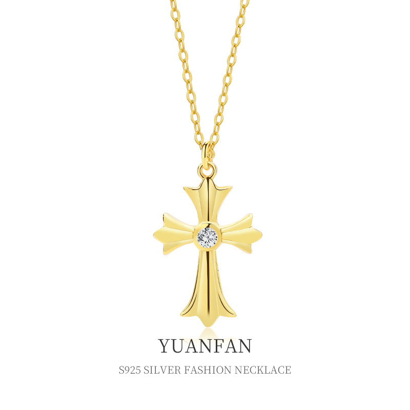 遠梵ジュエリーs925純銀欧米風クリエイティブゴールドクロスネックレスジルコン鎖骨チェーン女性向けライブ配信供給源