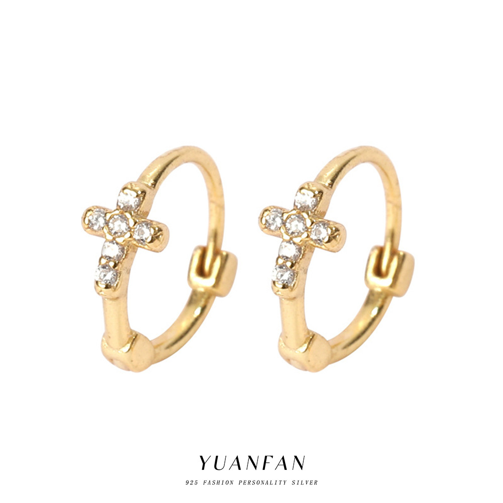 遠梵香925純銀耳飾り欧米の越境ins風気質の小さいジルコンの十字の耳は女性のイヤリングの現物を掛けます。