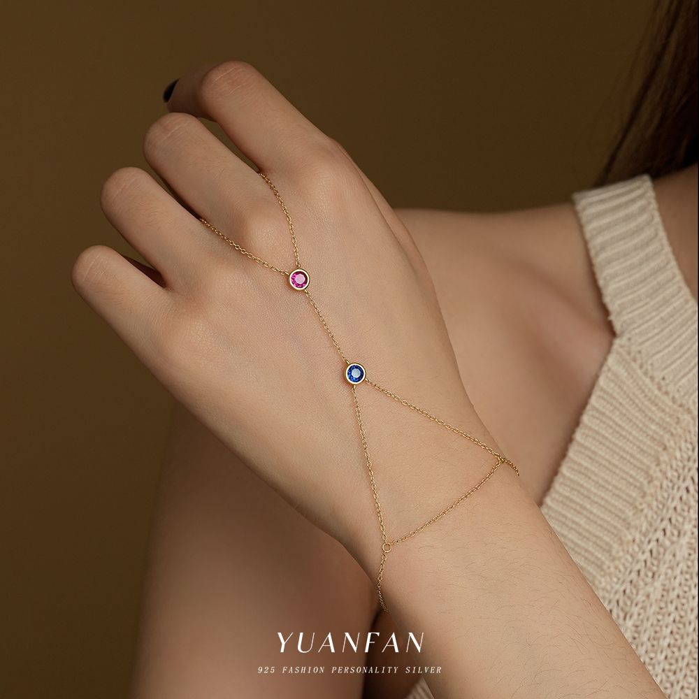 遠梵s925純銀緑松石ブレスレット女性ファッション軽豪華な指鎖にジルコンを入れて欧米のシンプルな手飾り