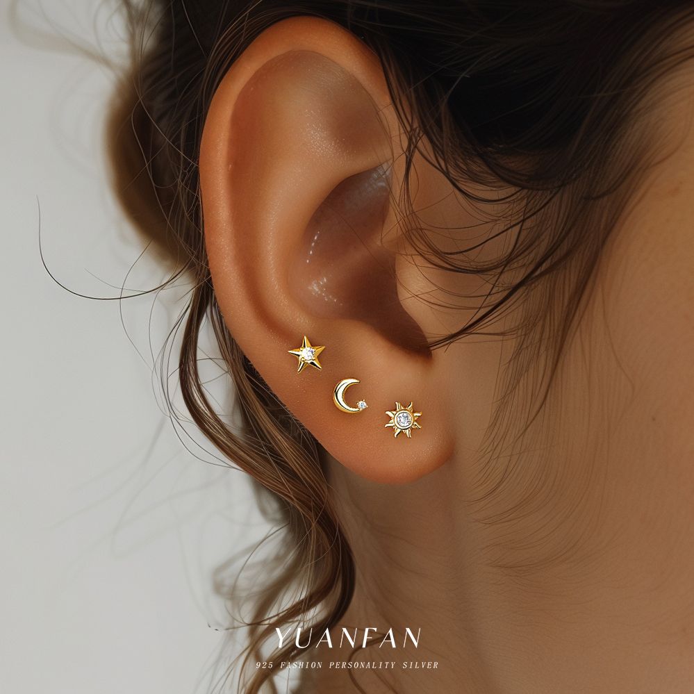 S925純銀欧米の豪華なイヤリング女性星月非対称耳輪小衆の個性は豪華で国境を越えた耳飾りになっている